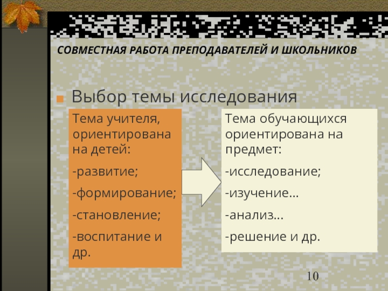 Тема обучающихся ориентирована на предмет: