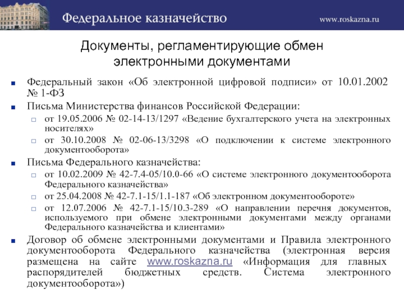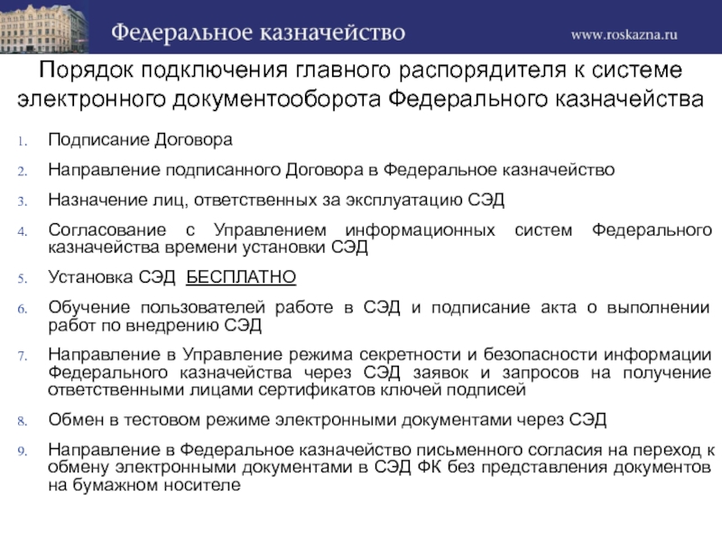 Порядок подключения главного распорядителя к системе электронного документооборота Федерального казначейства