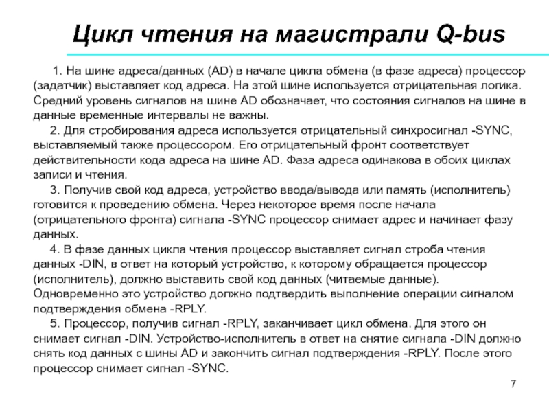 - На магистрали Q-bus сигнал подтверждения обязателен, и его должен формировать каждый исполнитель. К концу цикла обмена процессор всегда уверен, что устройство-исполнитель выполнило требуемую операцию.