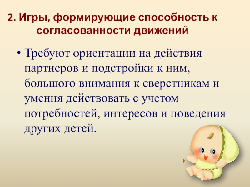 Слайд 152. Игры, формирующие способность к согласованности движений