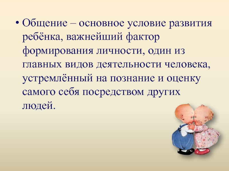 Слайд 2Общение – основное условие развития ребёнка, важнейший фактор формирования личности, один