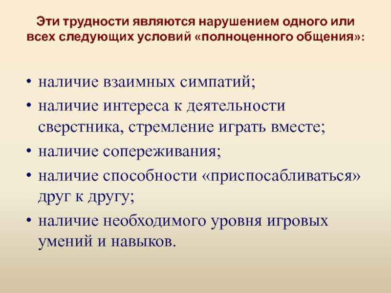 Слайд 23Эти трудности являются нарушением одного или всех следующих условий «полноценного общения»: