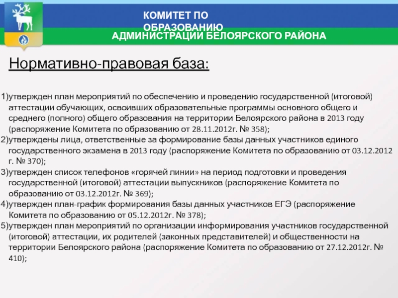 АДМИНИСТРАЦИИ БЕЛОЯРСКОГО РАЙОНА