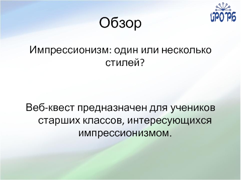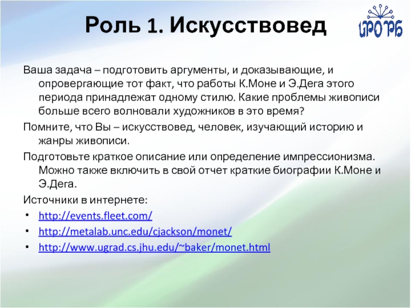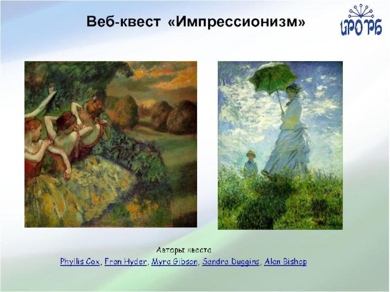 Цель веб-квеста – рассмотреть импрессионизм как стилевое направление с позиций искусствоведа, художественного критика, сотрудника музея и мецената.