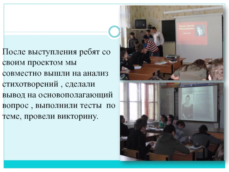 анализ стихотворений , сделали вывод на основополагающий вопрос , выполнили тесты по теме, провели викторину.