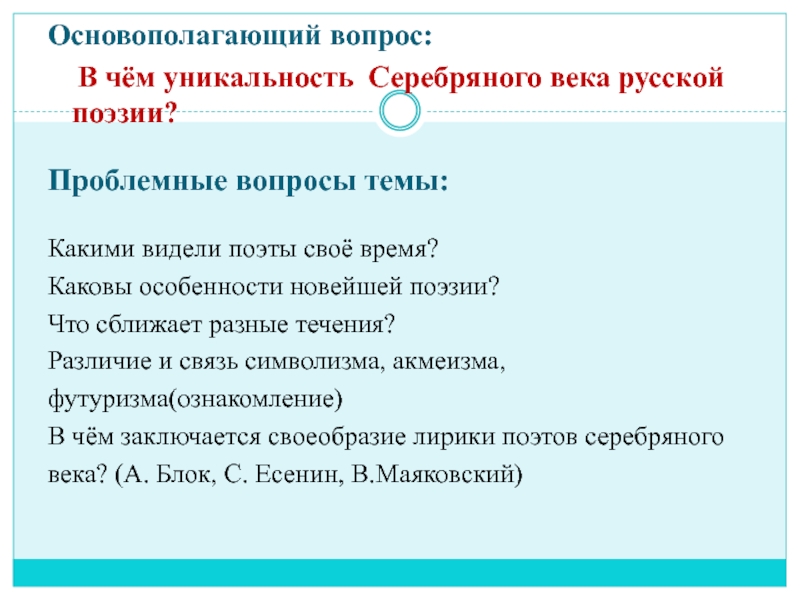 века? (А. Блок, С. Есенин, В.Маяковский)
