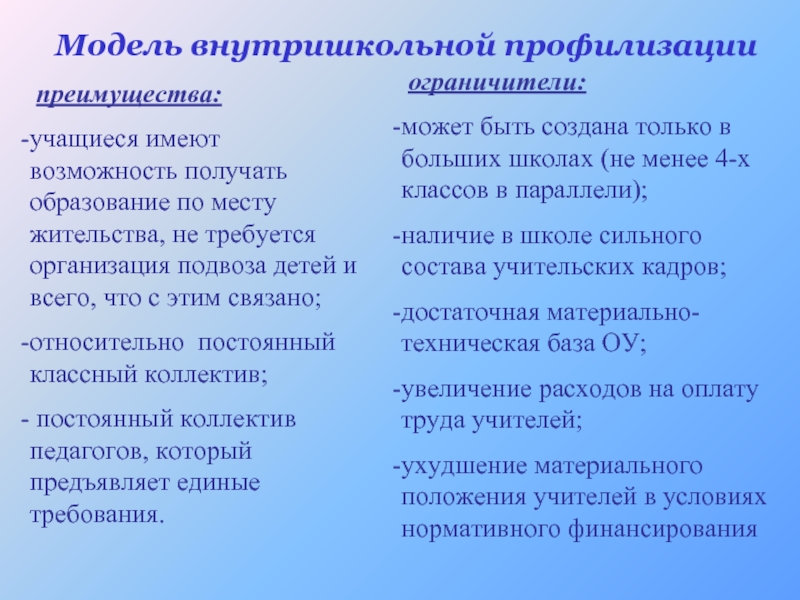 может быть создана только в больших школах (не менее 4-х классов в параллели);