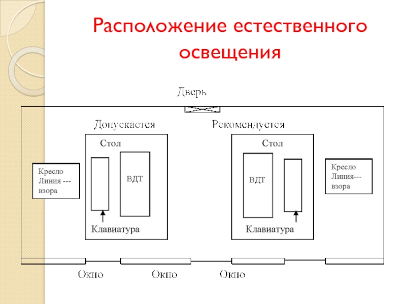 Слайд 13Расположение естественного освещения
