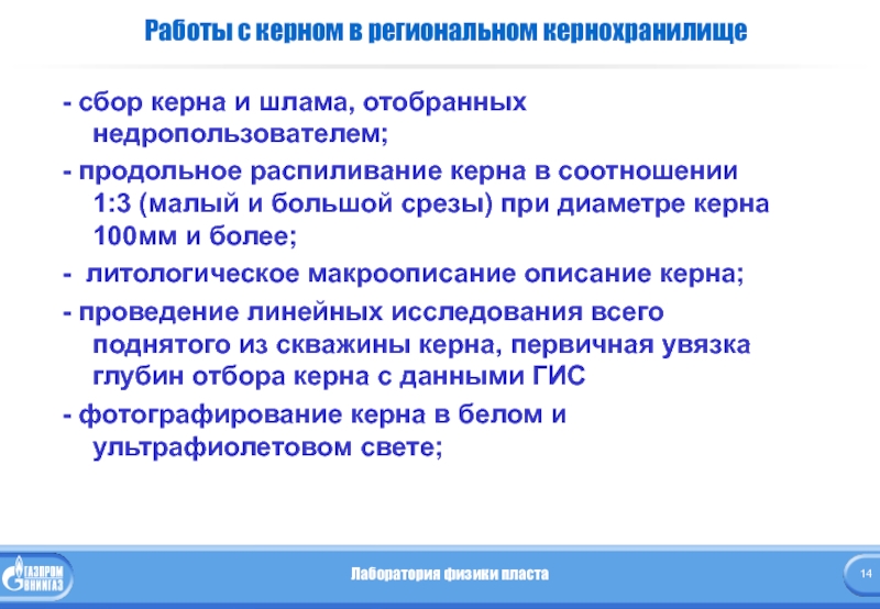 Слайд 18Работы с керном в Корпоративном кернохранилище