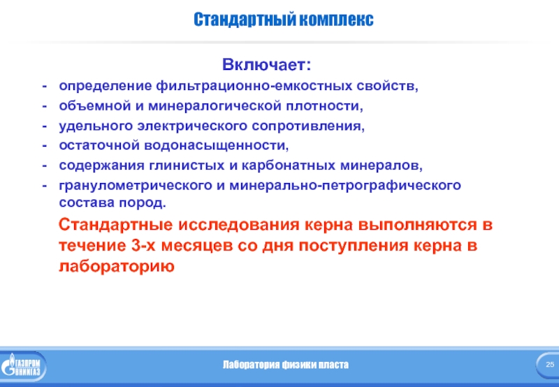 Стандартные исследования керна выполняются в течение 3-х месяцев со дня поступления керна в лабораторию