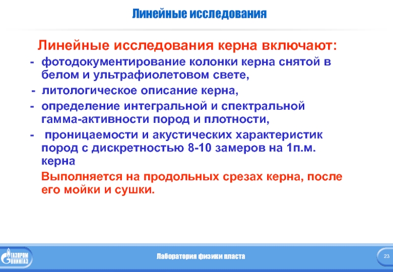 линейные исследования кернового материала проводятся для оперативного выделения коллекторов, привязки