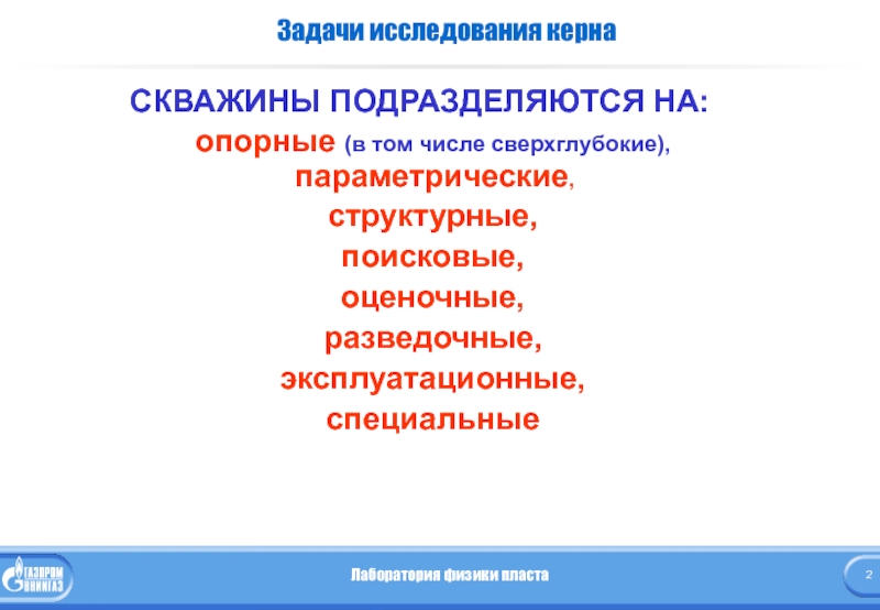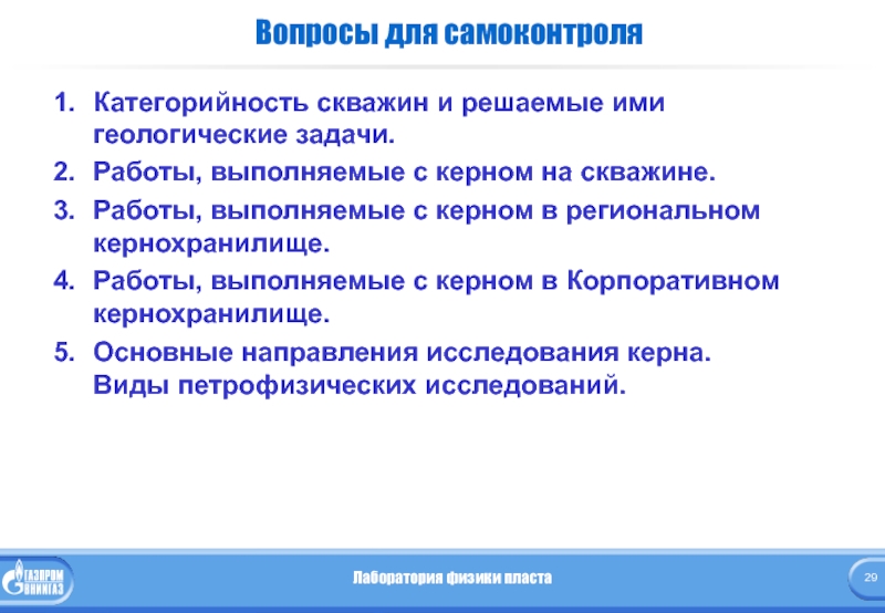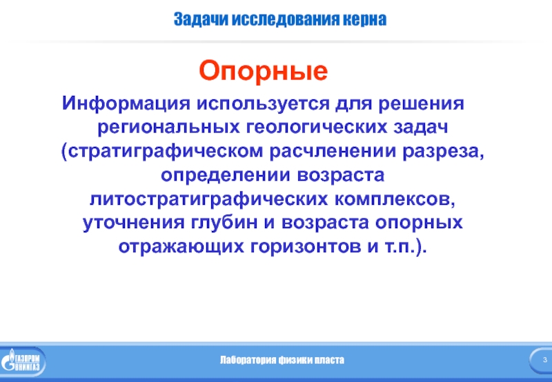 - ревизия кернового материала из скважин ОАО «Газпром» за последние 15 лет;