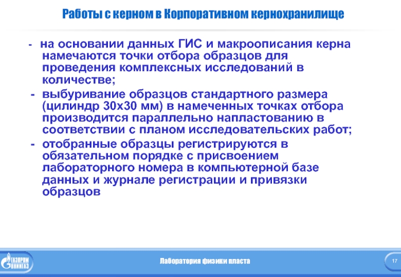 Слайд 17Работы с керном в Корпоративном кернохранилище