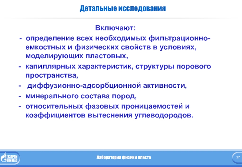 - выполнение комплексных экспериментально-аналитических исследований керна;