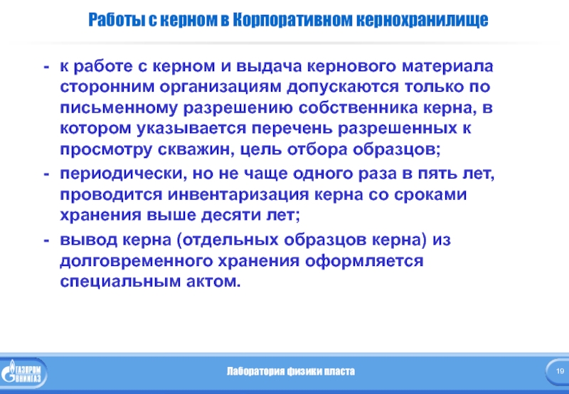 Слайд 19Работы с керном в Корпоративном кернохранилище