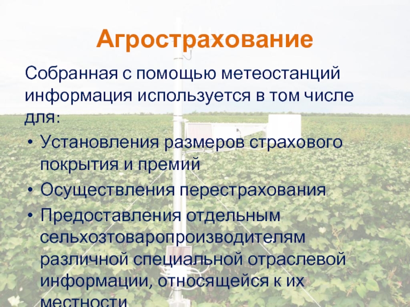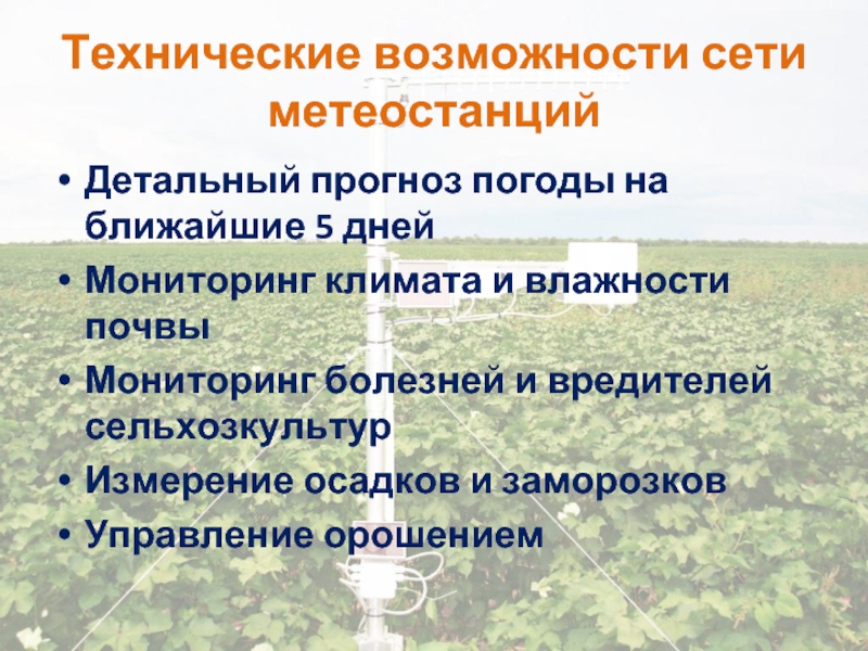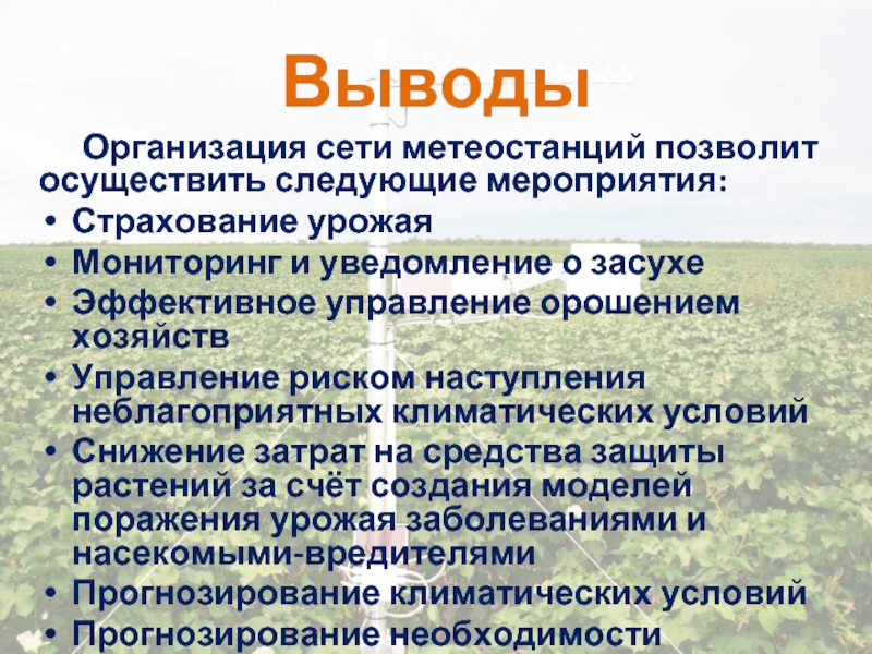 Организация сети метеостанций позволит осуществить следующие мероприятия: