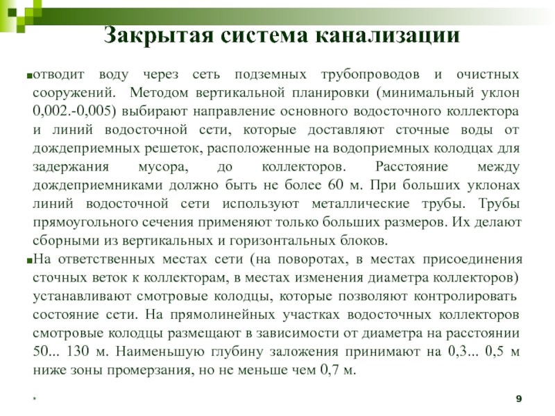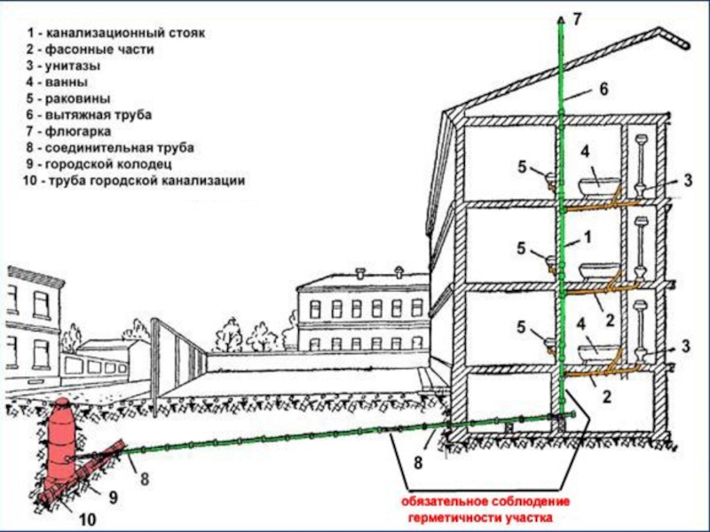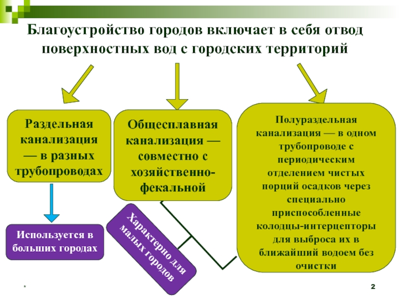 Полураздельная канализация — в одном трубопроводе с периодическим отделением чистых порций осадков через специально приспособленные колодцы-интерцепторы для выброса их в ближайший водоем без очистки