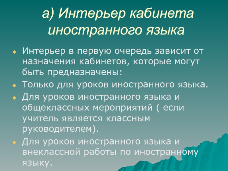 Слайд 8 а) Интерьер кабинета иностранного языка