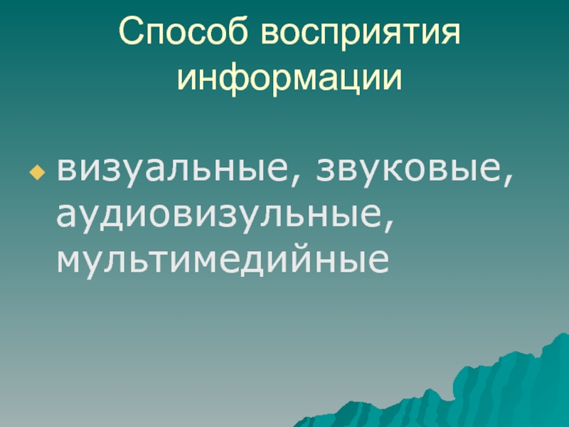 визуальные, звуковые, аудиовизульные, мультимедийные