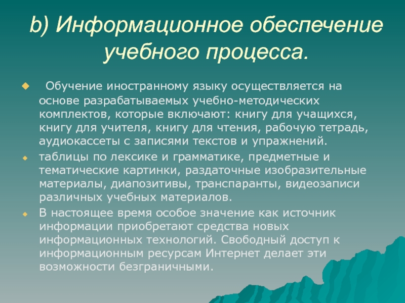 Слайд 12b) Информационное обеспечение учебного процесса.