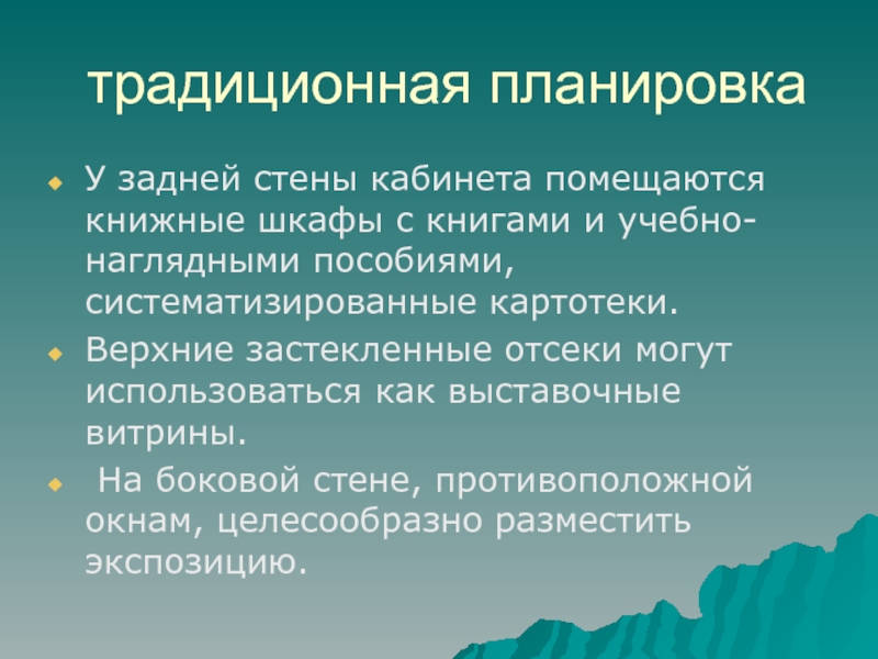 На боковой стене, противоположной окнам, целесообразно разместить экспозицию.