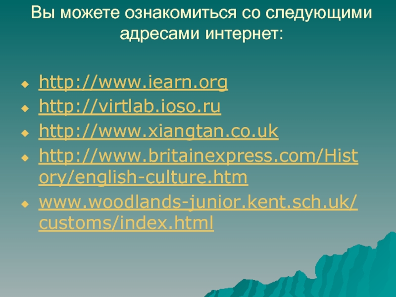 Слайд 21Вы можете ознакомиться со следующими адресами интернет: