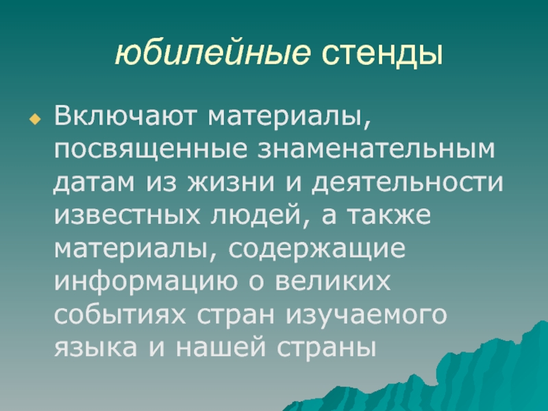 известных людей, а также материалы, содержащие информацию о великих событиях стран изучаемого языка и нашей страны