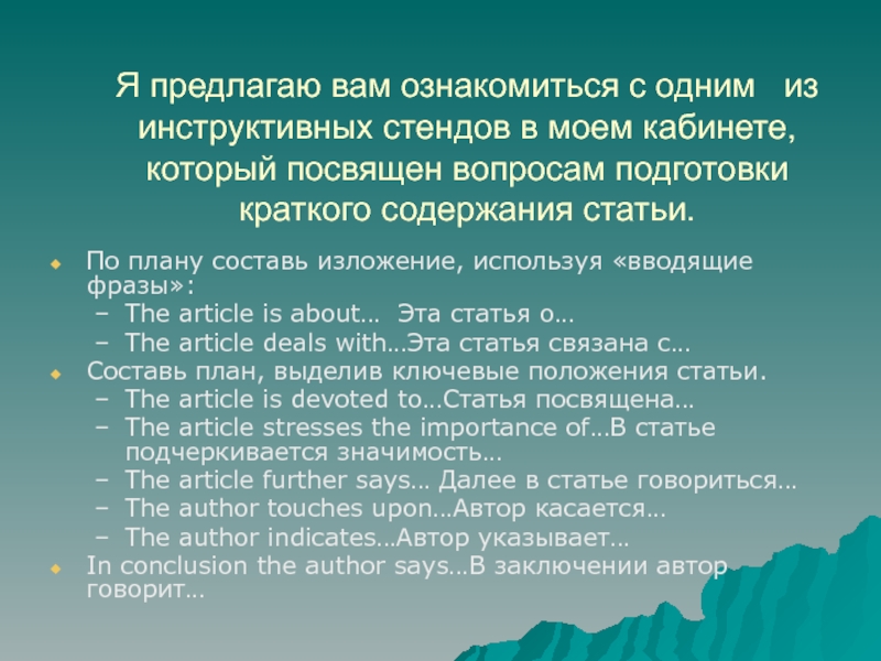 моем кабинете, который посвящен вопросам подготовки краткого содержания статьи.
