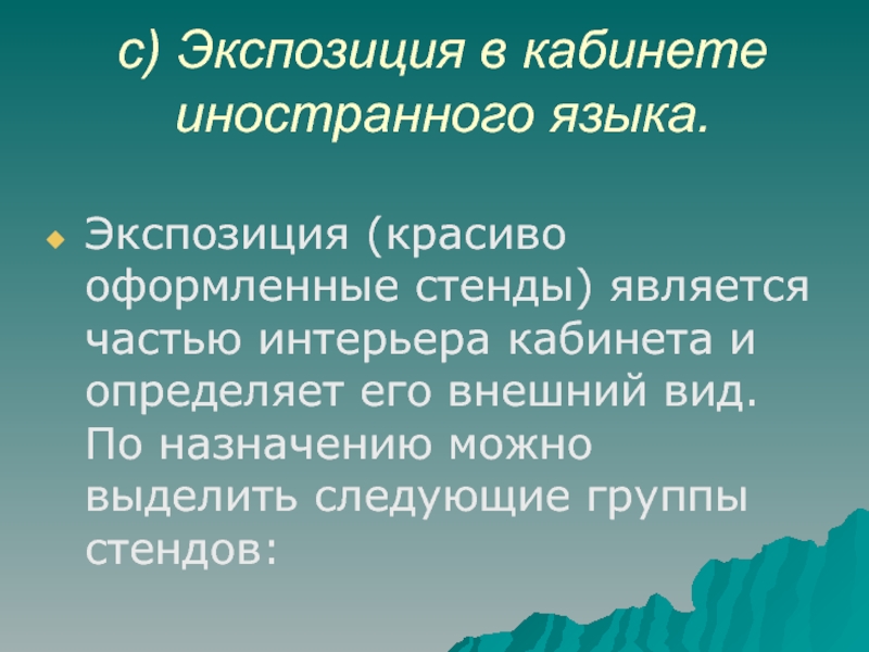 Слайд 13c) Экспозиция в кабинете иностранного языка.