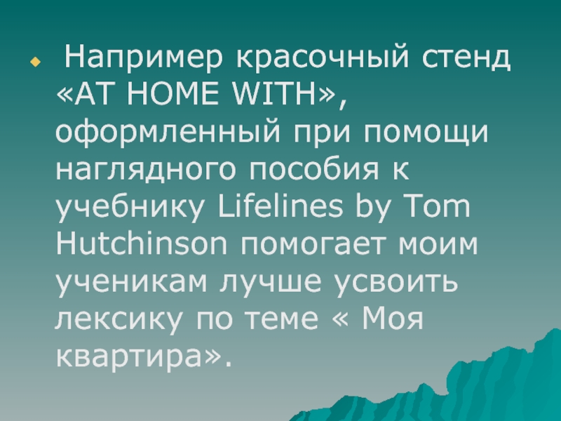 Слайд 19 Например красочный стенд «AT HOME WITH», оформленный при помощи наглядного