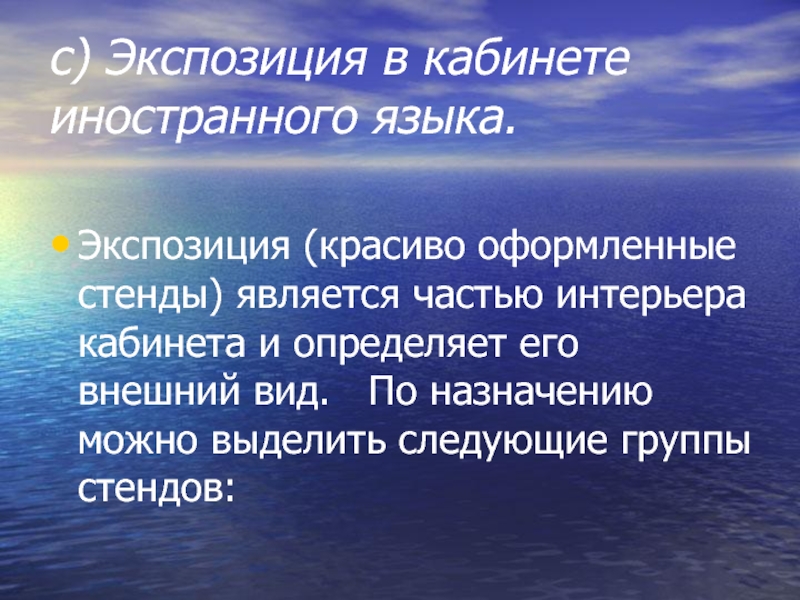 Слайд 13c) Экспозиция в кабинете иностранного языка.
