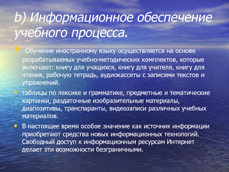 Слайд 12b) Информационное обеспечение учебного процесса.