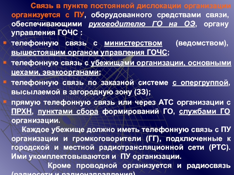 Слайд 13Система связи ГО организации (предприятия, учреждения) включает: