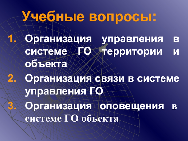 - аппаратура оповещения и каналы связи, по которым ОУ ГОЧС получает сигналы оповещения ГО;