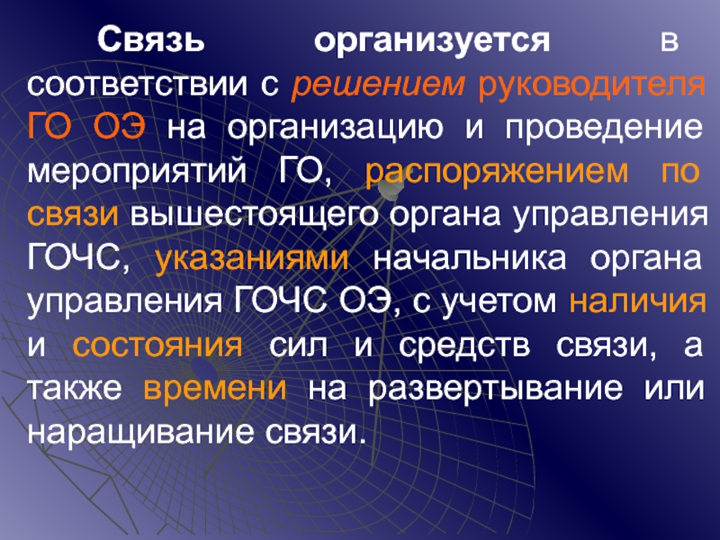 Непосредственно организует и обеспечивает постоянную готовность связи и оповещения начальник службы связи и оповещения ГО.