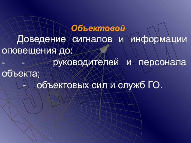 Слайд 39Система оповещения объекта создается на базе существующей городской (районной) и производственной