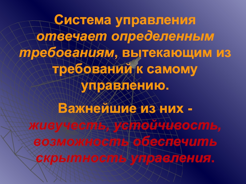 Важнейшие из них - живучесть, устойчивость, возможность обеспечить скрытность управления.