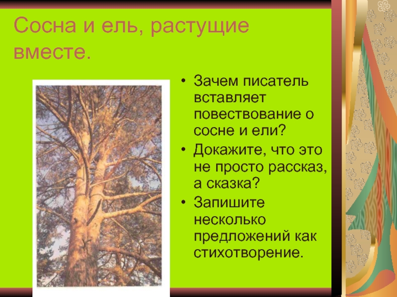 Вставив в повествование рассказ о сосне и ели, автор даёт понять,