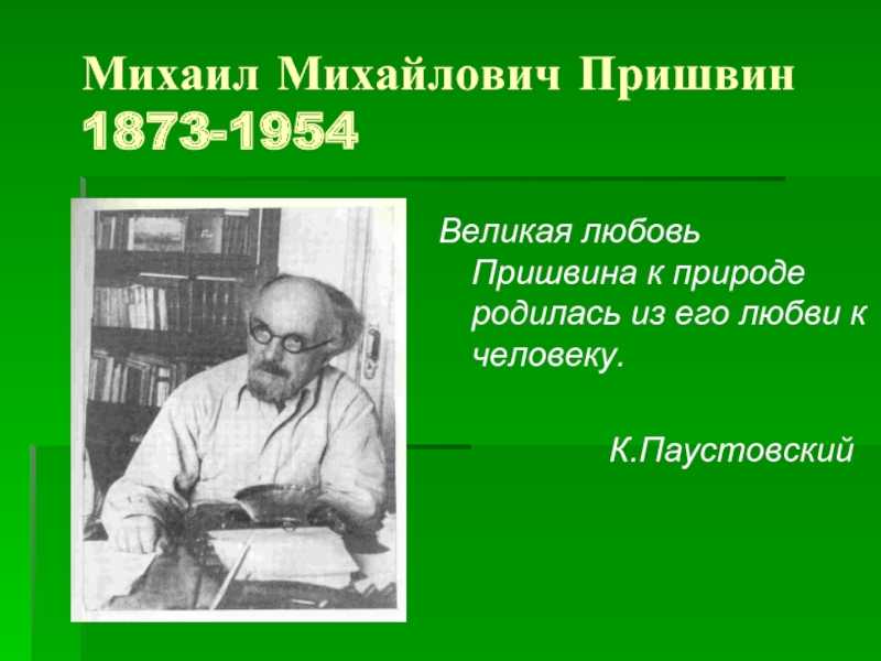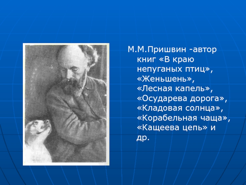 М.М.Пришвин -автор книг «В краю непуганых птиц», «Женьшень», «Лесная капель», «Осударева