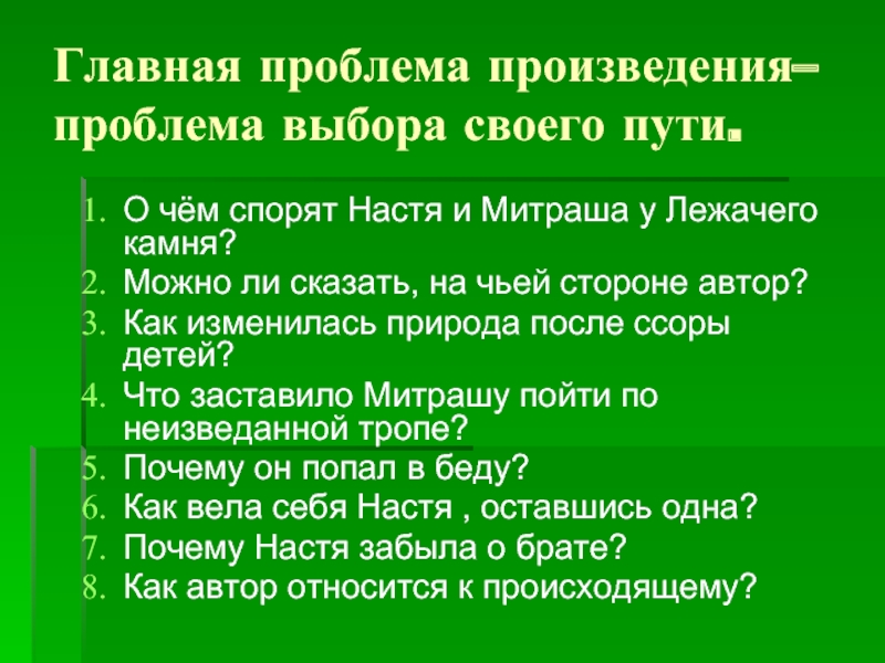 Слайд 20Главная проблема произведения–проблема выбора своего пути.