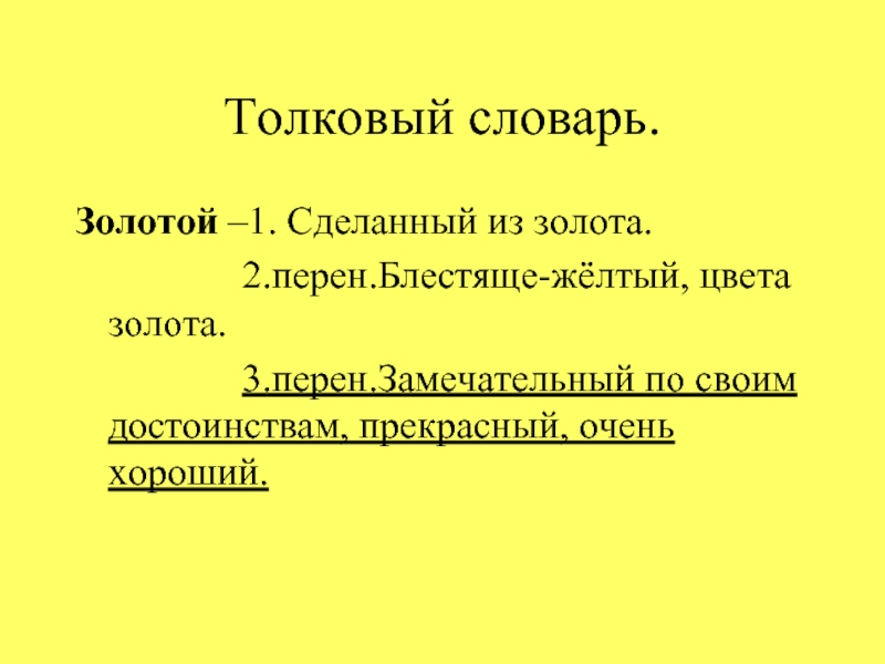-В каком значении в данных словосочетаниях употреблено слово «золотой»(см.словарь).