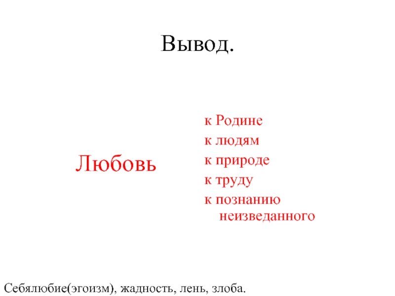 Себялюбие(эгоизм), жадность, лень, злоба.