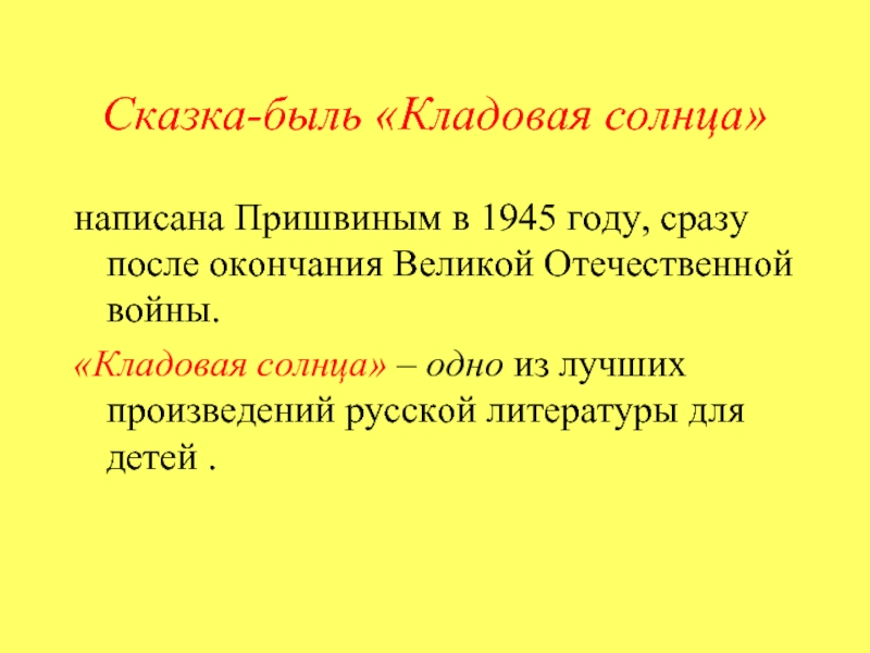 «Кладовая солнца» – одно из лучших произведений русской литературы для детей .