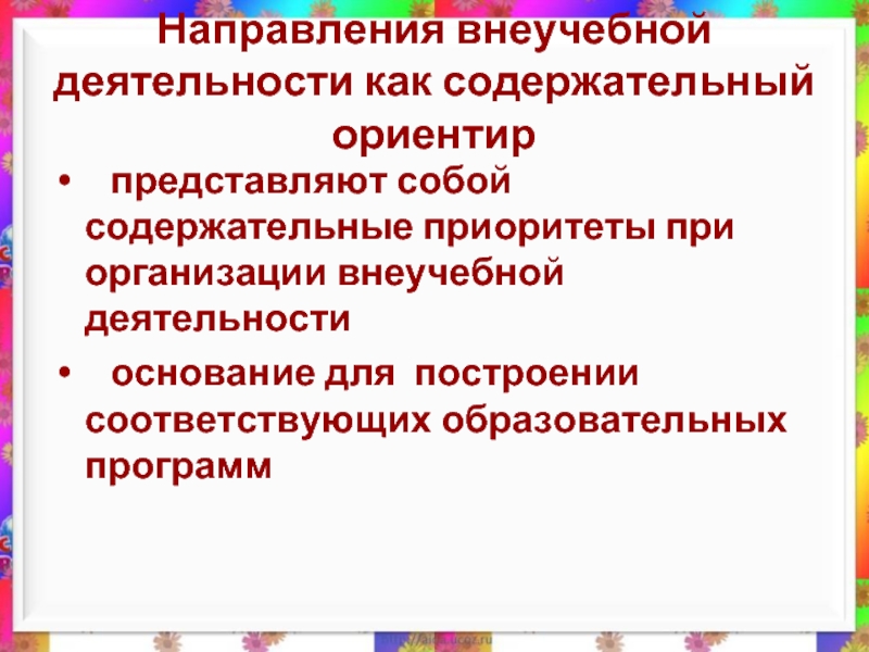 Слайд 9Направления внеучебной деятельности как содержательный ориентир