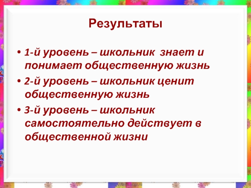3-й уровень – школьник самостоятельно действует в общественной жизни