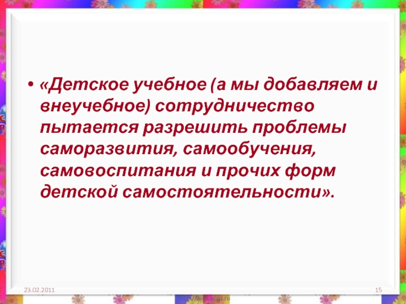 саморазвития, самообучения, самовоспитания и прочих форм детской самостоятельности».