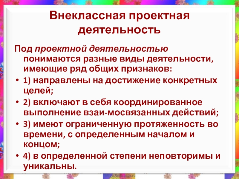 Под проектной деятельностью понимаются разные виды деятельности, имеющие