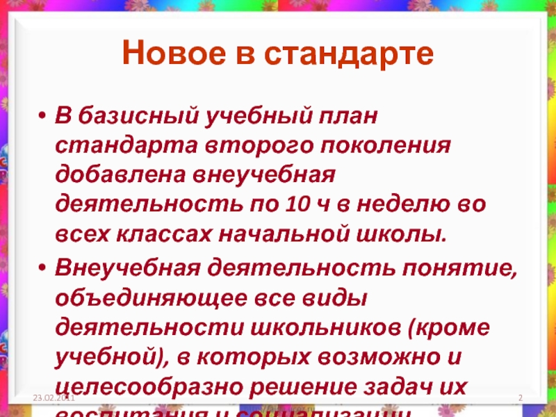 В базисный учебный план стандарта второго поколения добавлена внеучебная