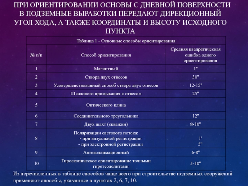 Слайд 3 ПРИ ОРИЕНТИРОВАНИИ ОСНОВЫ С ДНЕВНОЙ ПОВЕРХНОСТИ В ПОДЗЕМНЫЕ ВЫРАБОТКИ ПЕРЕДАЮТ