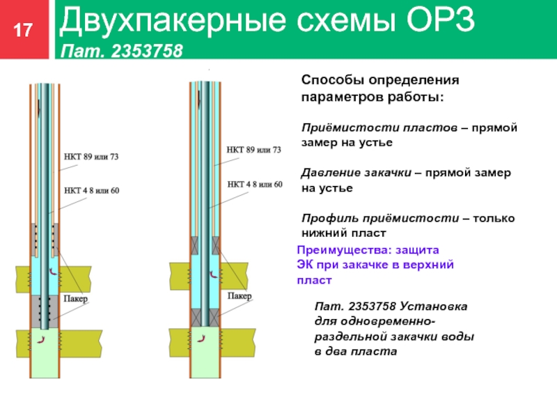 Преимущества: полный объём информации о работе пластов, простота конструкци и регулирования объёмов закачки